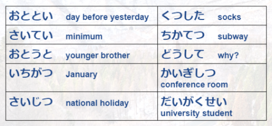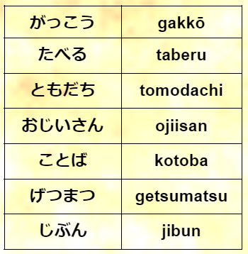 Read the following words transcribed in Hiragana. For comparison, we reproduce the transcription in Rōmaji at the end.